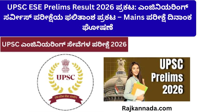 UPSC ESE Prelims Result 2026 ಪ್ರಕಟ: ಎಂಜಿನಿಯರಿಂಗ್ ಸರ್ವೀಸ್ ಪರೀಕ್ಷೆಯ ಫಲಿತಾಂಶ ಪ್ರಕಟ – Mains ಪರೀಕ್ಷೆ ದಿನಾಂಕ ಘೋಷಣೆ ಕೇಂದ್ರ ಸರ್ಕಾರಿ ಇಂಜಿನಿಯರಿಂಗ್ ಸೇವೆಗಳಲ್ಲಿ …