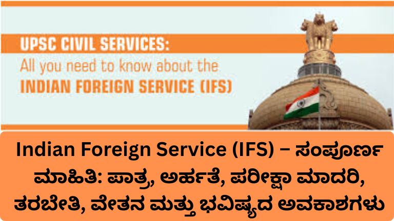 Indian Foreign Service (IFS) – ಸಂಪೂರ್ಣ ಮಾಹಿತಿ: ಪಾತ್ರ, ಅರ್ಹತೆ, ಪರೀಕ್ಷಾ ಮಾದರಿ, ತರಬೇತಿ, ವೇತನ ಮತ್ತು ಭವಿಷ್ಯದ ಅವಕಾಶಗಳು ಭಾರತದ ಅತ್ಯಂತ ಪ್ರತಿಷ್ಠಿತ ಹಾಗೂ …